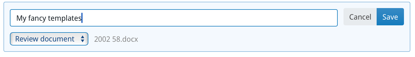 You can then set a title (this will be shown in the export dropdown-lists of your end-users) and the module for which this template is intended (currently either reviewing or summarisation).