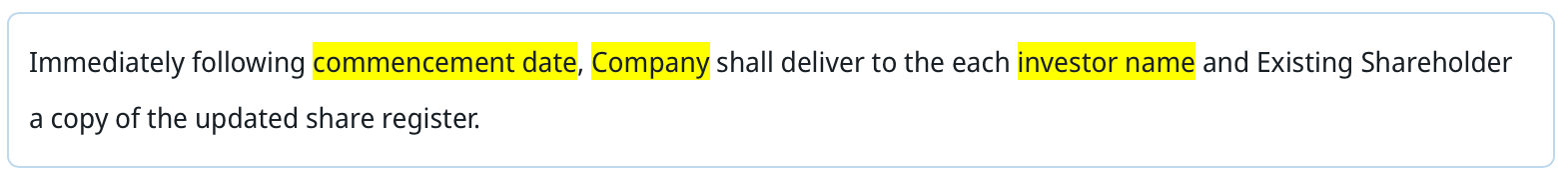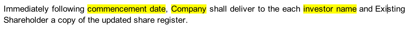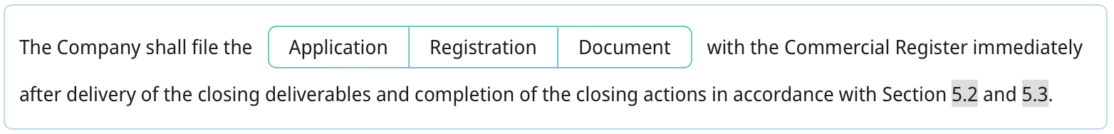 Note that a commonly found style in legal templates is to use both square brackets and highlighted text. Bracketeer will treat such situations as mere placeholders, i.e. not as options (as would be the case when only square brackets but no highlights would be used).
