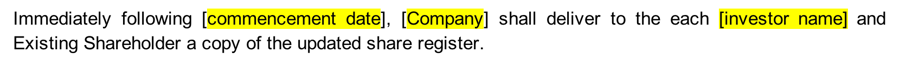 Optional text parts are represented by square brackets. For example, the text below can either be "each resigning existing Director" or "each Director":