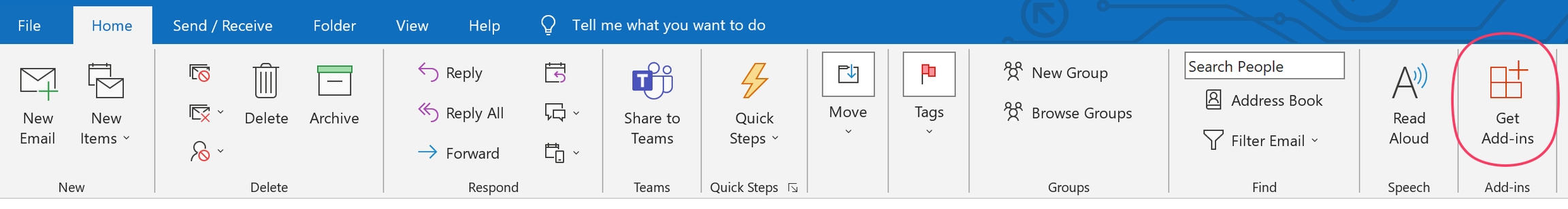 In the new version of Microsoft Outlook for Windows, the "Apps" button is located in a different part of the Ribbon at the top.