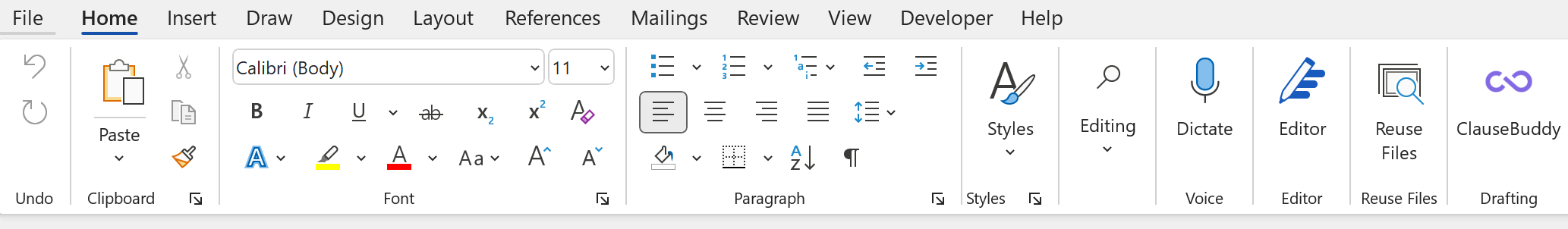 After installation, you will see an icon for ClauseBuddy at the right side in your Home tab.