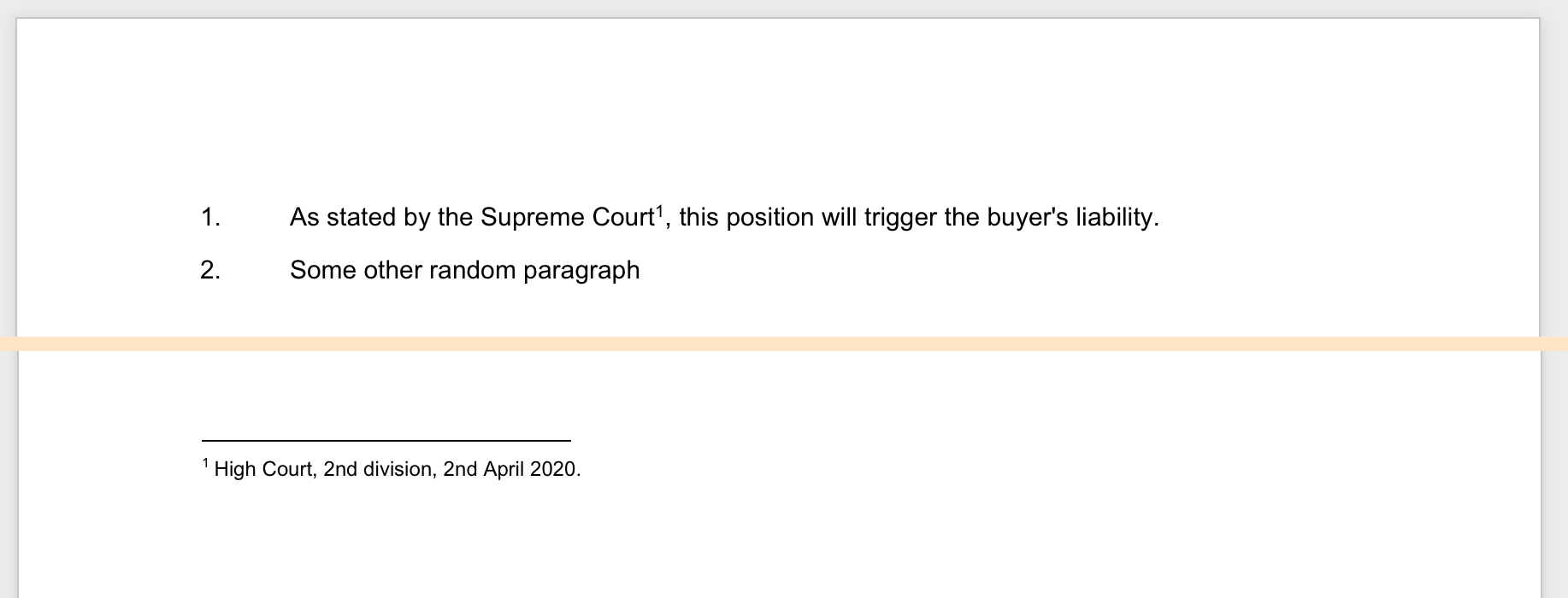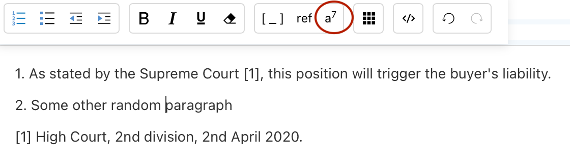 You can also insert footnotes without using the footnote button. Simply insert a number within square brackets in a paragraph, and repeat that same number at the bottom of the clause.
