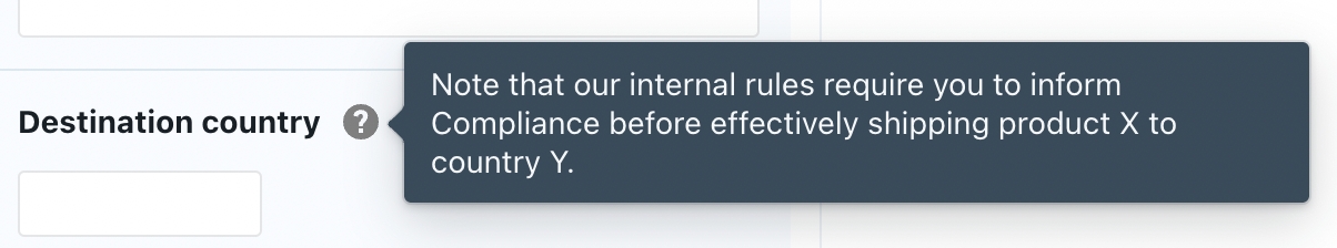 A help text can consist of a few words with extra guidance or warnings. It will be shown in a popup balloon towards the end-user: