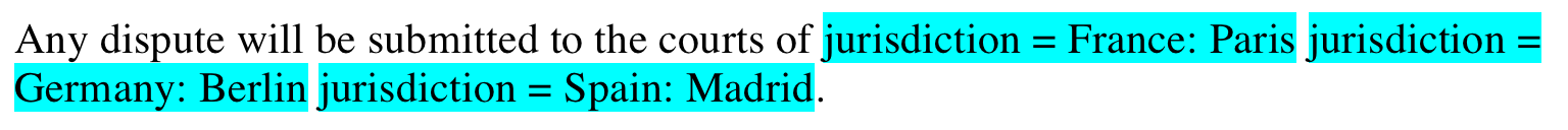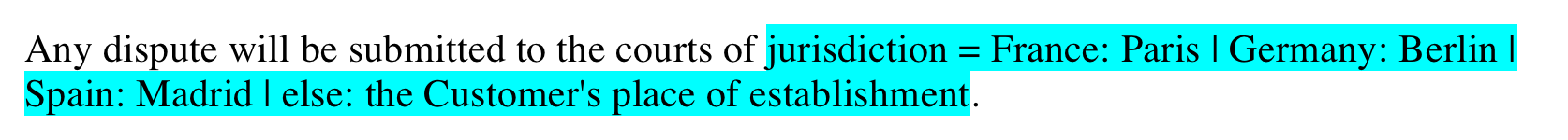 In ClauseBuddy, placeholders must be highlighted in cyan (light blue).