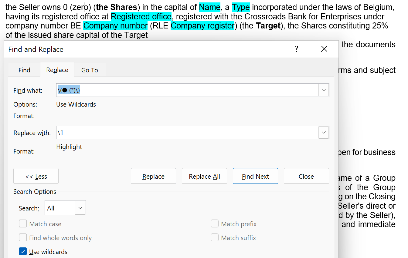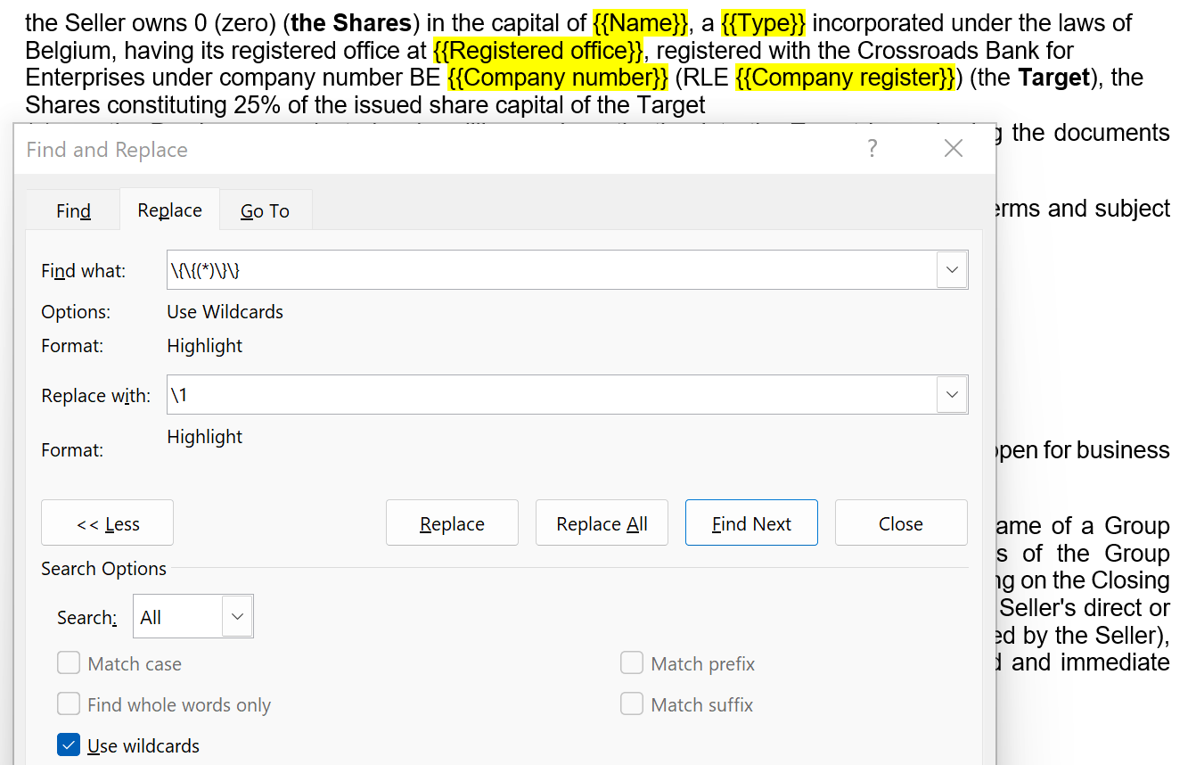Creating templates in ClauseBuddy starts with highlighting words in an existing DOCX (Word) document. While very easy to get started with, there are few details you may want to be aware of.